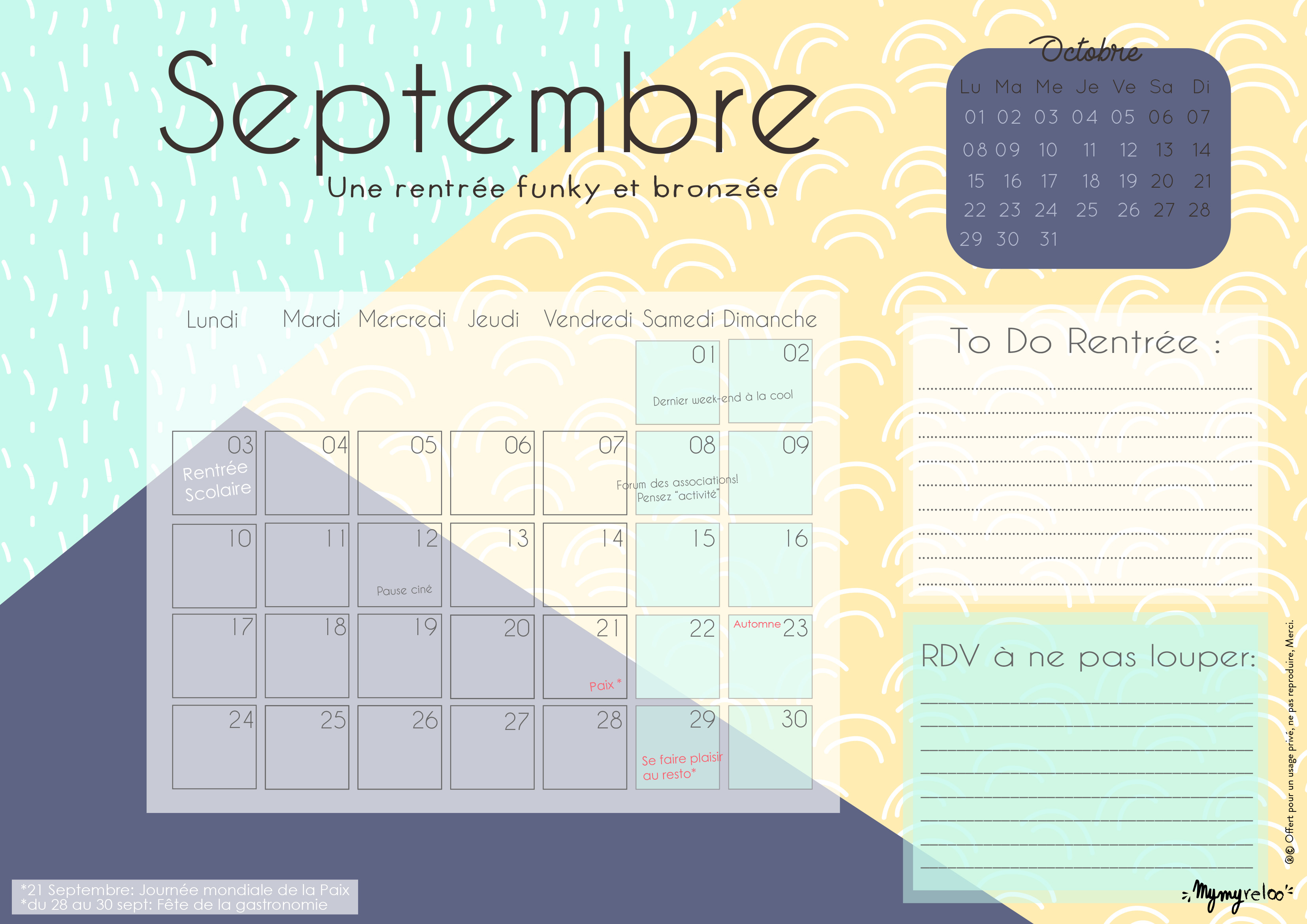 C’est avec quelques jours de retard que je vous poste votre nouveau calendrier, pour le mois de Septembre! Il est simple, graphique et coloré pour une rentrée bien préparée! 😉