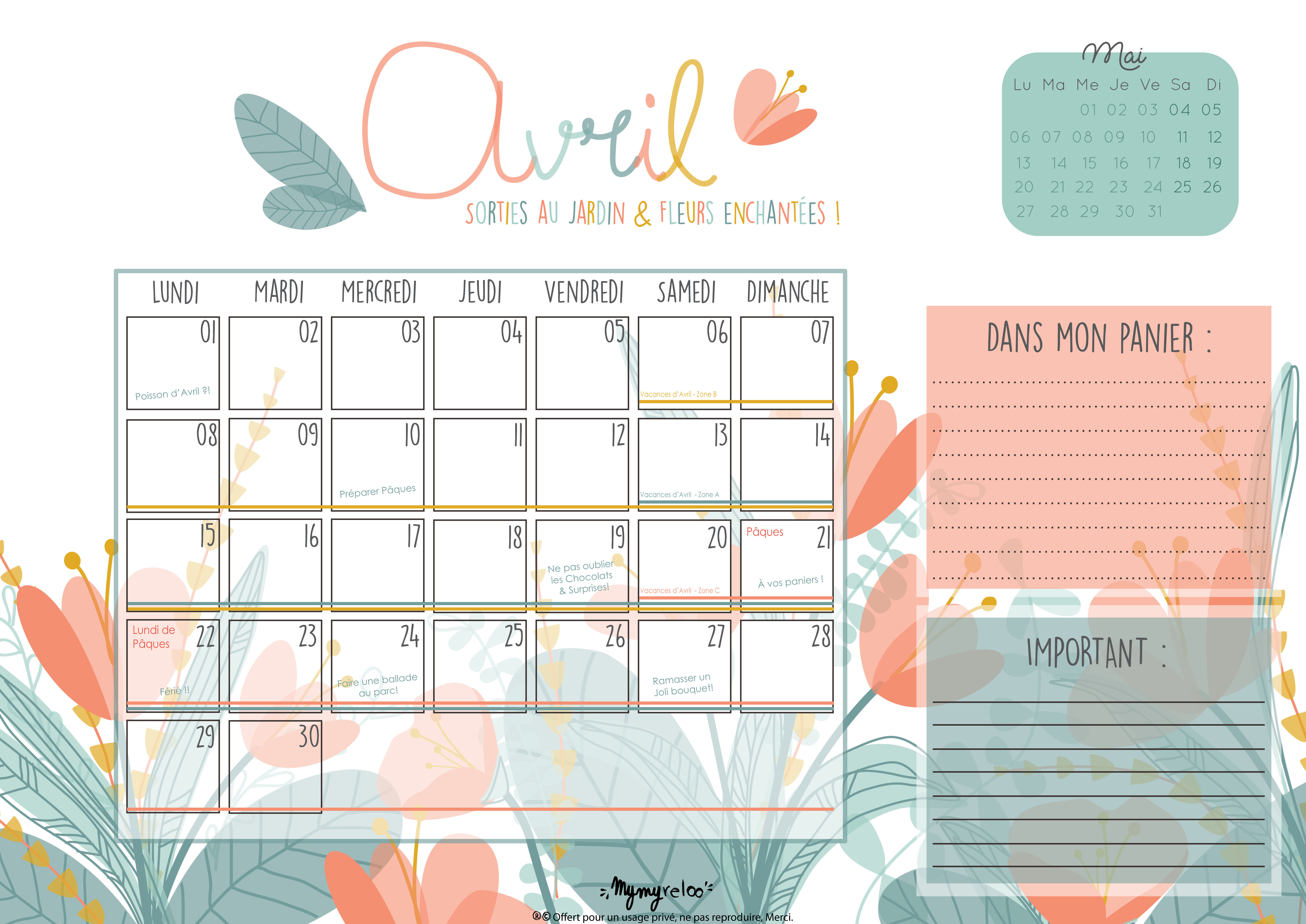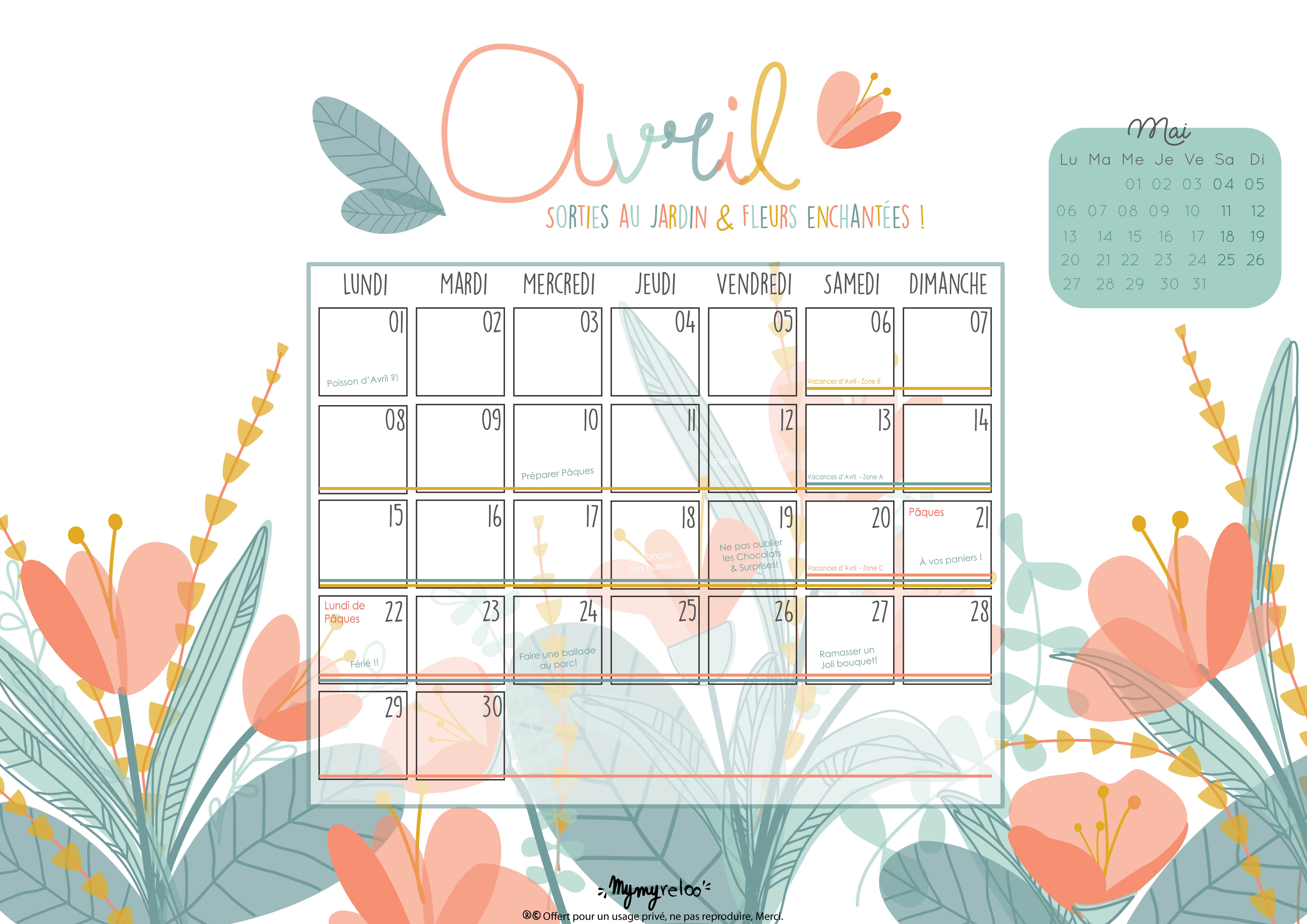 Voici donc vos goodies pour le mois d’Avril 2019! Un mois qui sent bon le soleil, les fleurs éclosent et elles raniment nos jardins et toutes ses activités très agréables à faire dehors!! J’ai adoré vous dessiner ce thème floral, et j’espère qu’il vous donnera autant de pep’s et de joie que j’ai eu en le dessinant!!