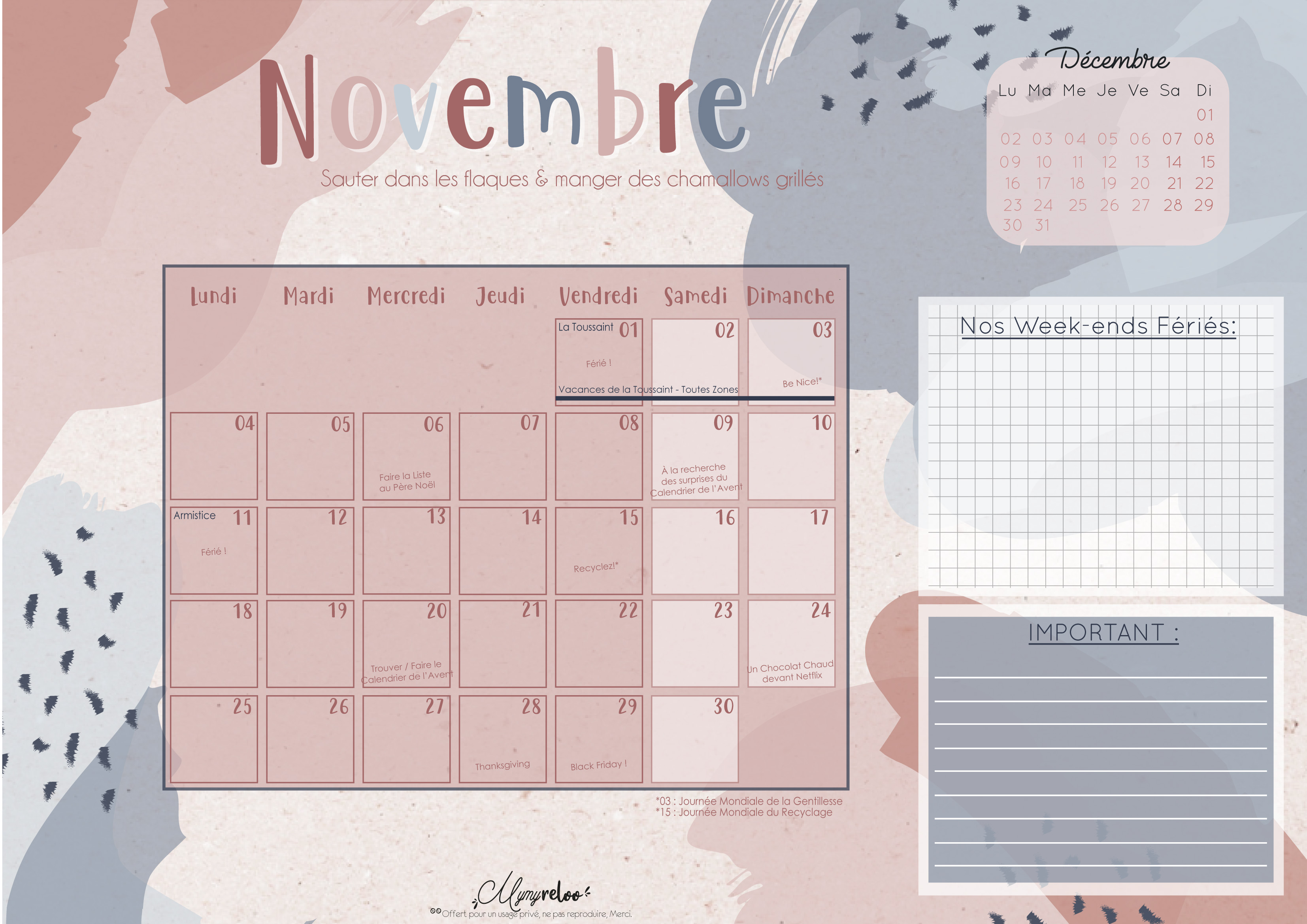 Bonne organisation et bon mois de novembre!!