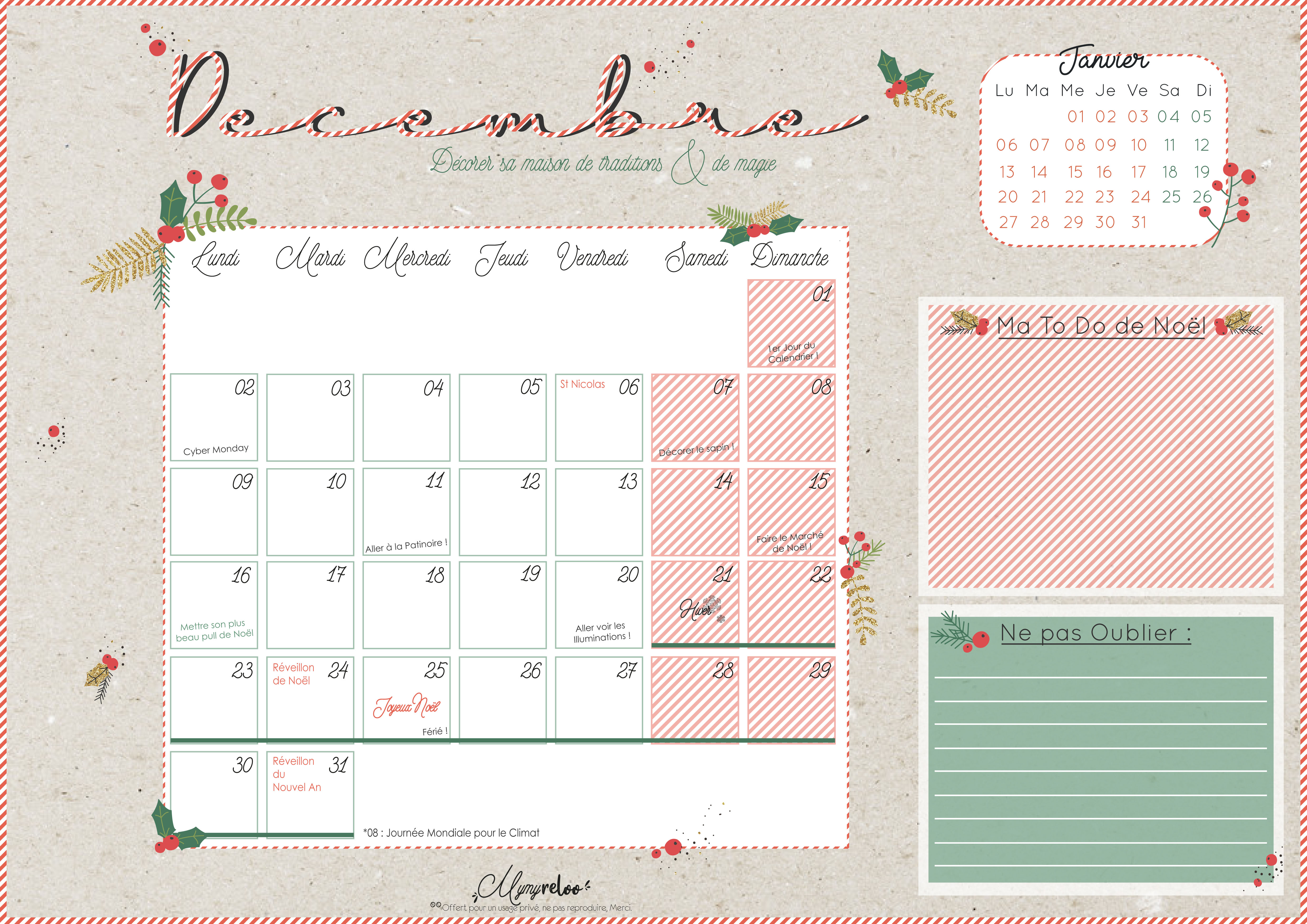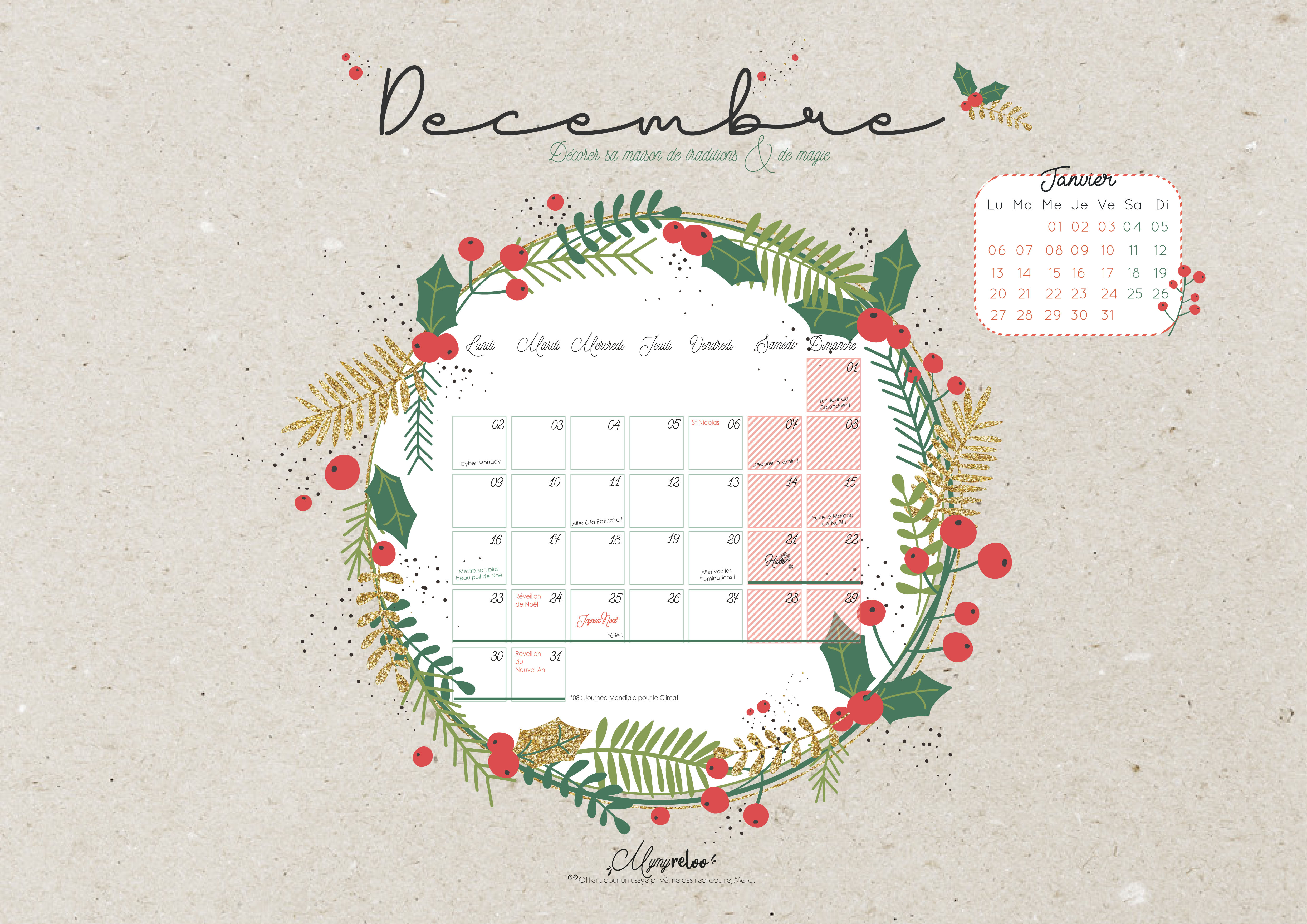 Vous retrouverez donc un Calendrier et des planches de Bullet Journal dans l’esprit de Noël et de ses traditions pour être bien organisée pour ces belles fêtes qui approchent !