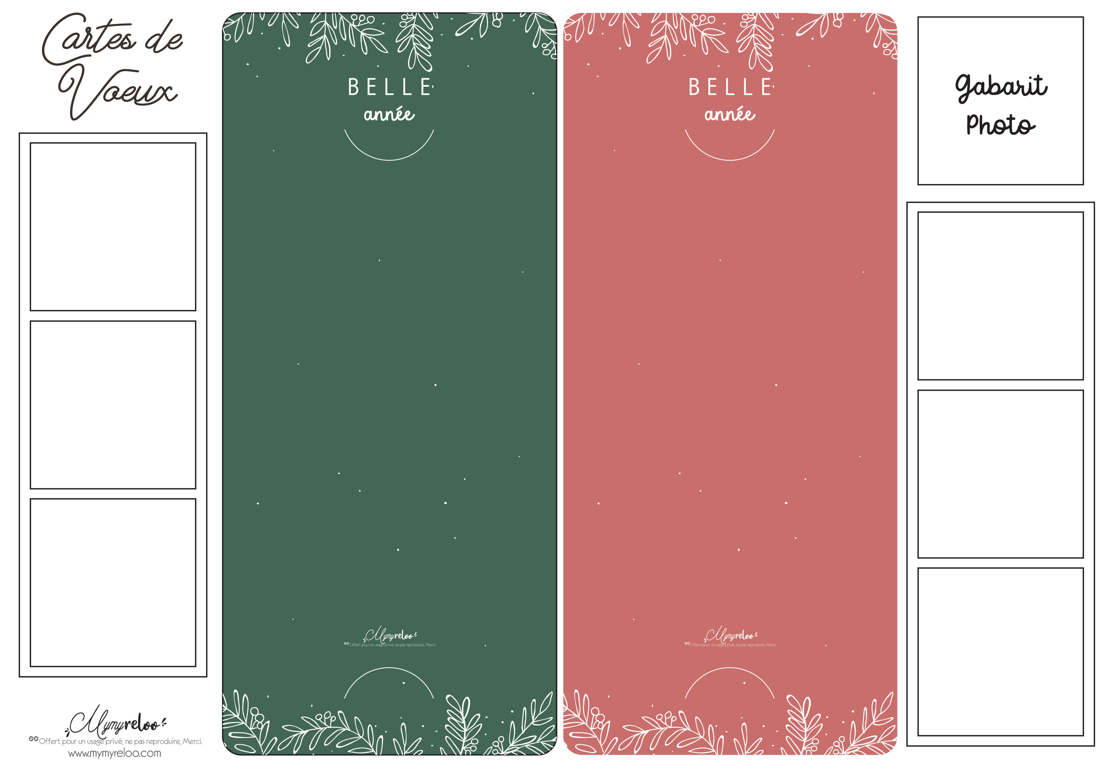 carte voeuxcarte voeuxPour créer vos jolies cartes: il suffit d’imprimer vos goodies, de découper vos cartes et gabarits. D’imprimer 3 photos miniatures, qui illustrent votre année, votre famille, et de les coller sur le gabarit.