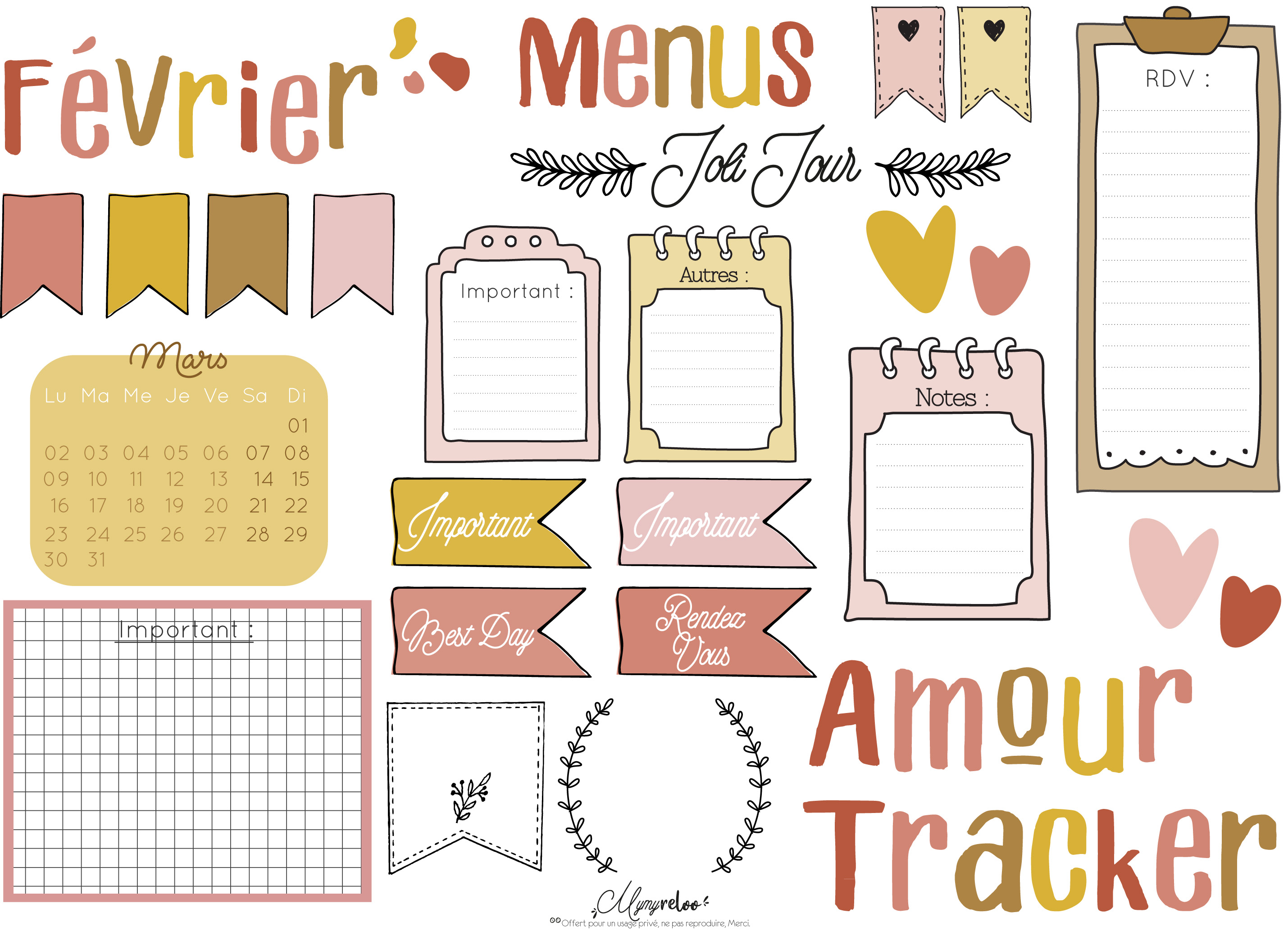 Retrouvez aussi 2 planches de déco et d’aide à l’organisation, pour vous aider à créer votre Bullet Journal, vos to do list, agenda…