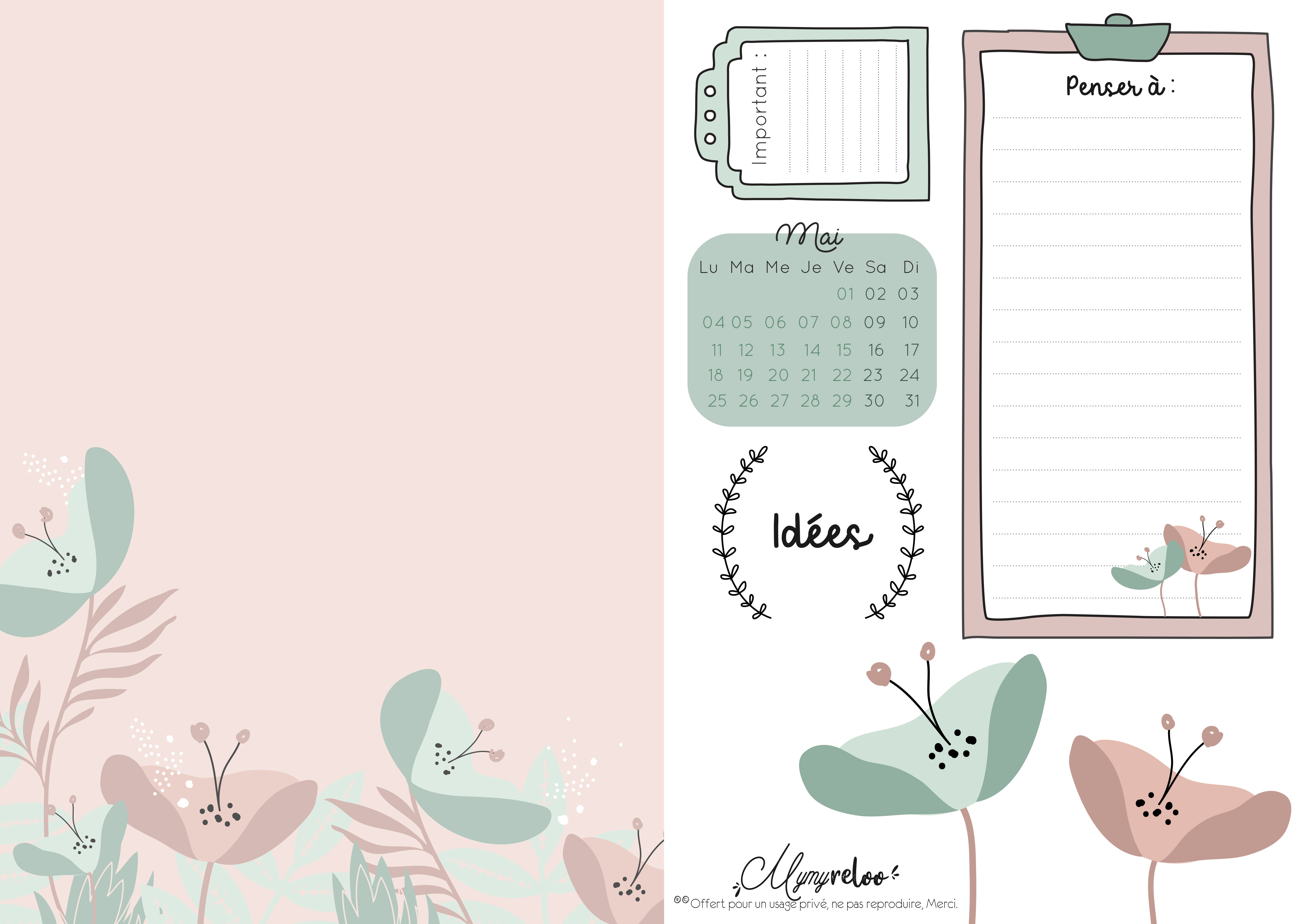 Un thème printanier et floral, pour se donner du baume au cœur. Et comme j’ai eu un peu plus de temps que d’habitude pour le faire, j’en ai profité pour vous proposer de nouveaux formats, n’hésitez pas à me dire ce que vous préférez pour les mois à venir.