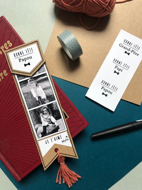 Cette année, j’ai choisi de vous préparer un marque-page photo, facile à réaliser avec peu de matériaux. J’ai clairement pensé à mon père qui adore lire, mais qui a pour mauvaise habitude de corner ses pages lorsqu’il s’arrête (Moi qui est horreur de voir un livre abîmé!)