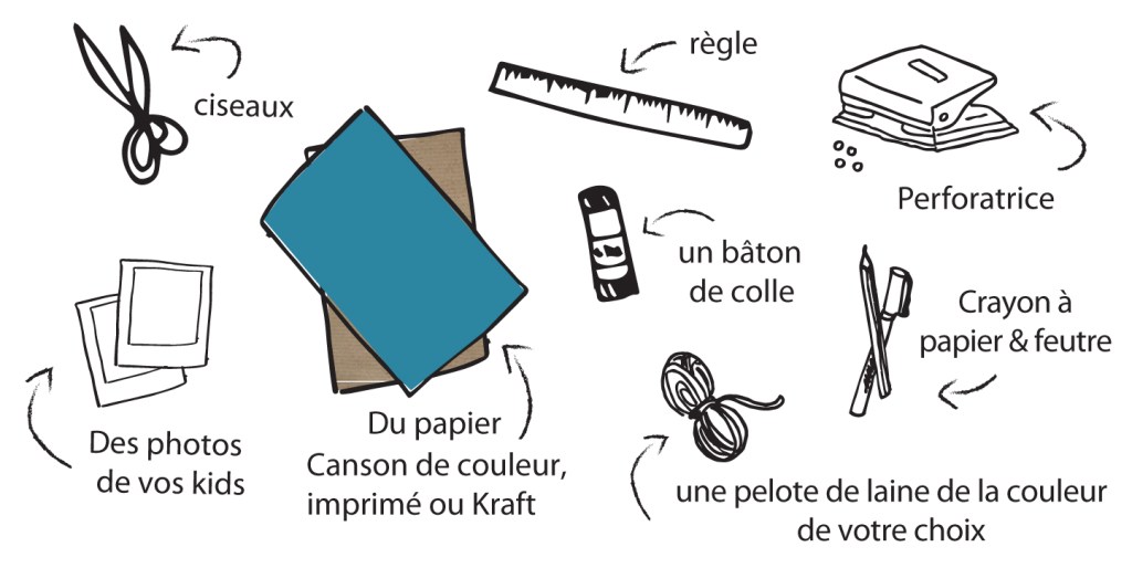Dans un premier temps, téléchargez et imprimez votre page de gabarit. Et imprimez également quelques photos de vos kids, format carré (3.75cm x 3.75 cm).