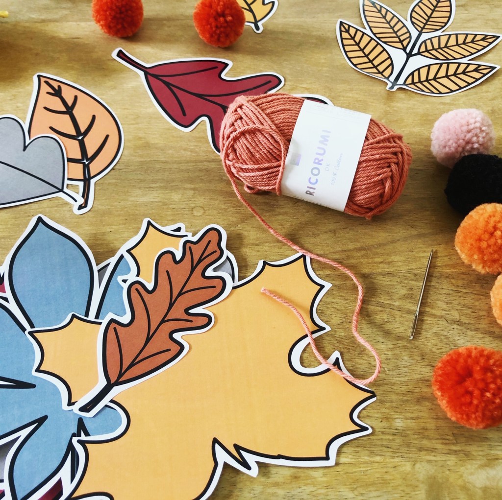 Vous pouvez aussi vous créer une couronne de porte si vous collez les feuilles & pompons à un cerclage ! 😉