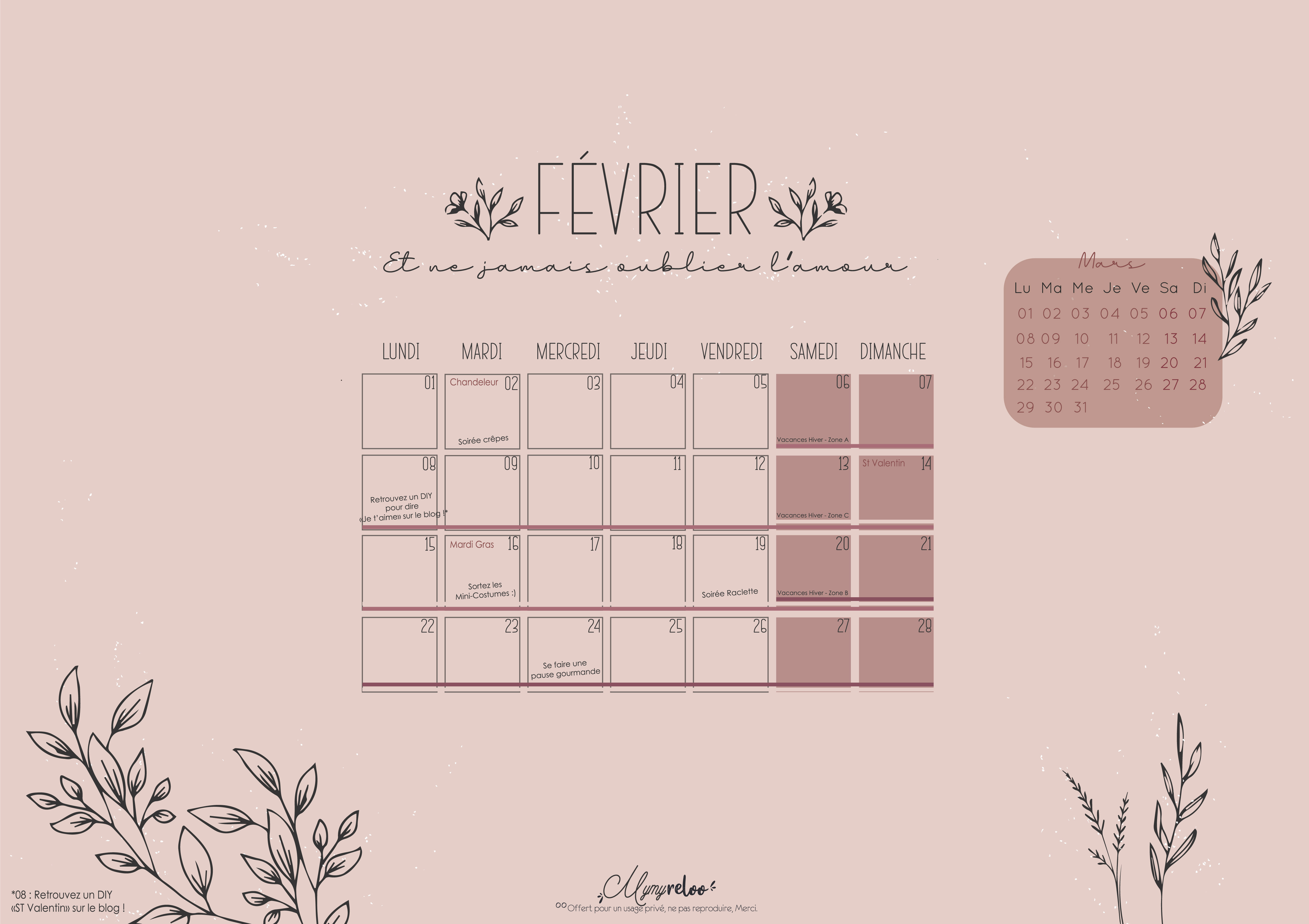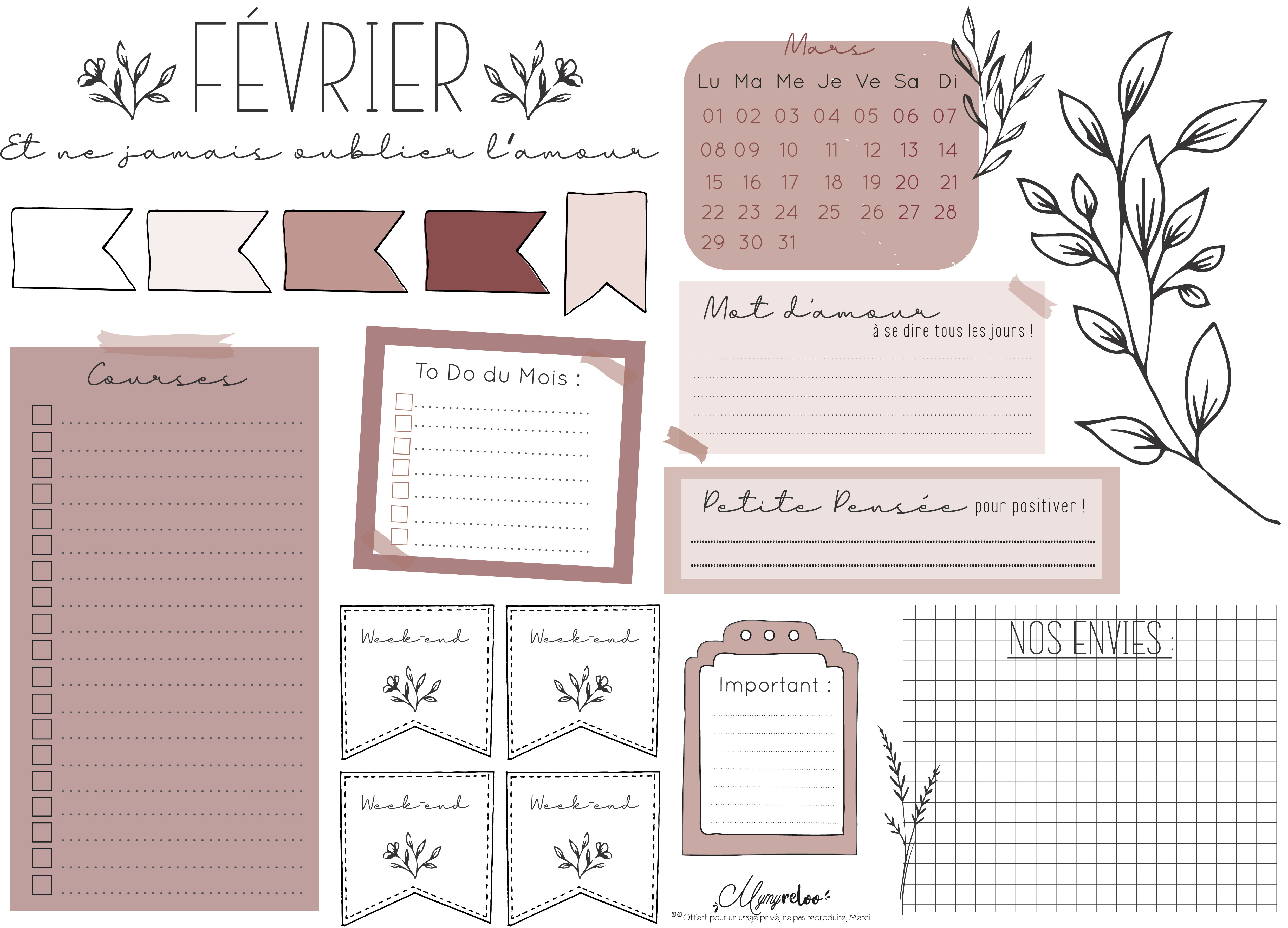 Voilà pour ce mois de Février 2021. J’espère que ce thème vous plaît et qu’il vous inspirera ! Passez un très bon mois, et no se retrouve dans quelques jours pour un nouveau goodies 100% Amour, pour une douce St Valentin !