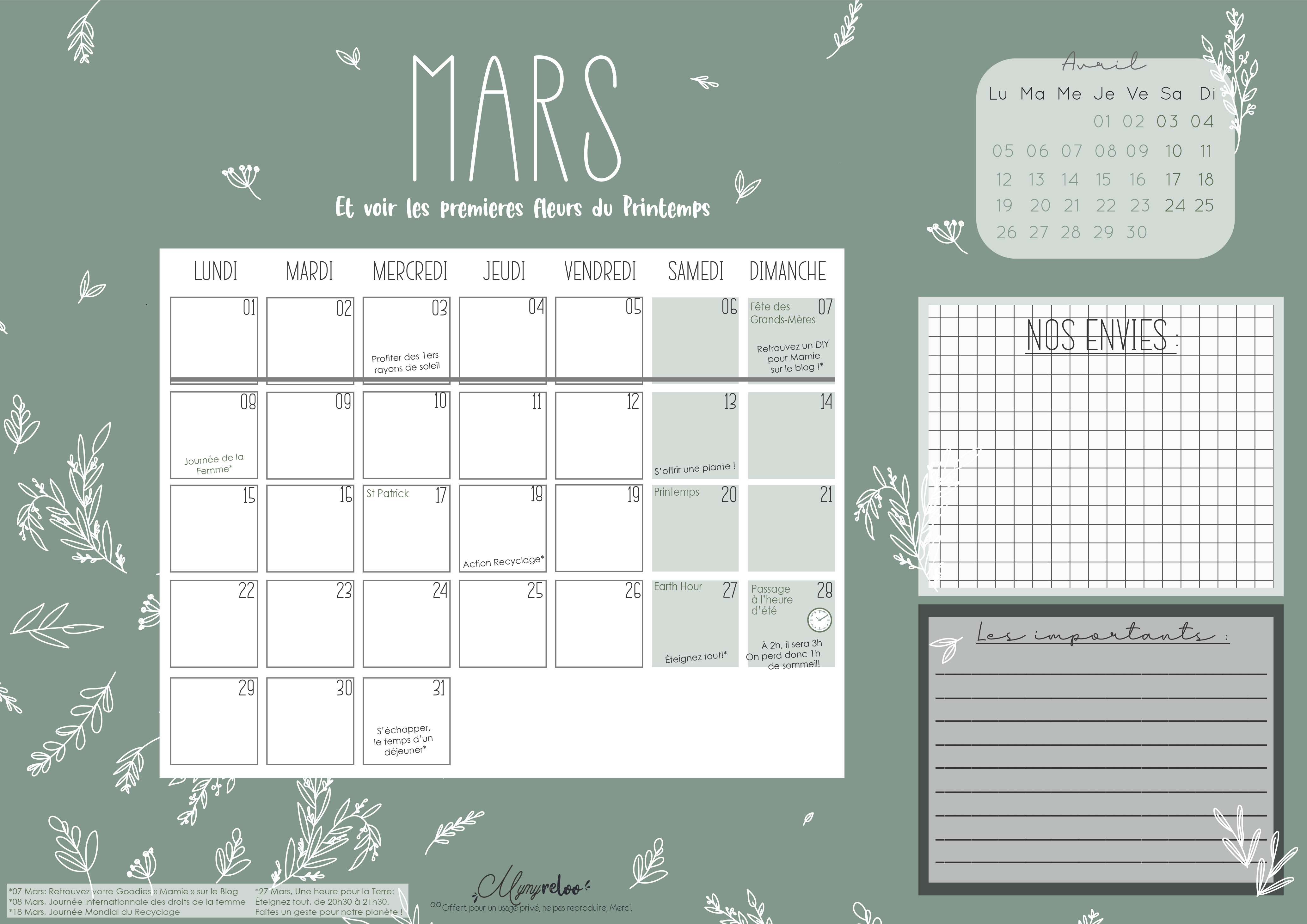 Les mois filent et je ne les vois pas passer… Il est déjà temps pour vous de récupérer vos goodies pour le mois de Mars.