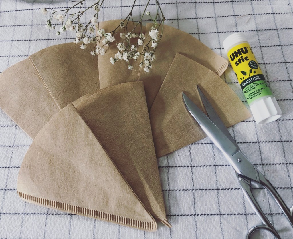 • de filtres à café (ici, du brun, mais vous pouvez prendre du blanc et le colorer avant si vous le souhaitez!)