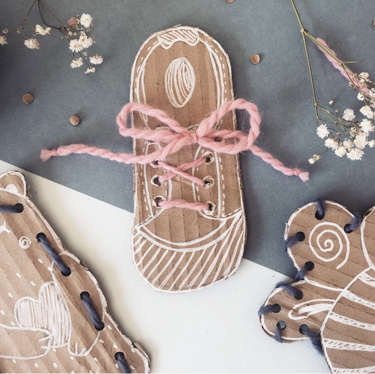 Chose promise chose due, cette semaine, je vous aide à occuper vos kids ! Avec un petit tuto simple, économique et qui va permettre à vos maternelles d’apprendre les différents points de laçage, réviser le dessus/dessous, et même à lacer leurs chaussures !