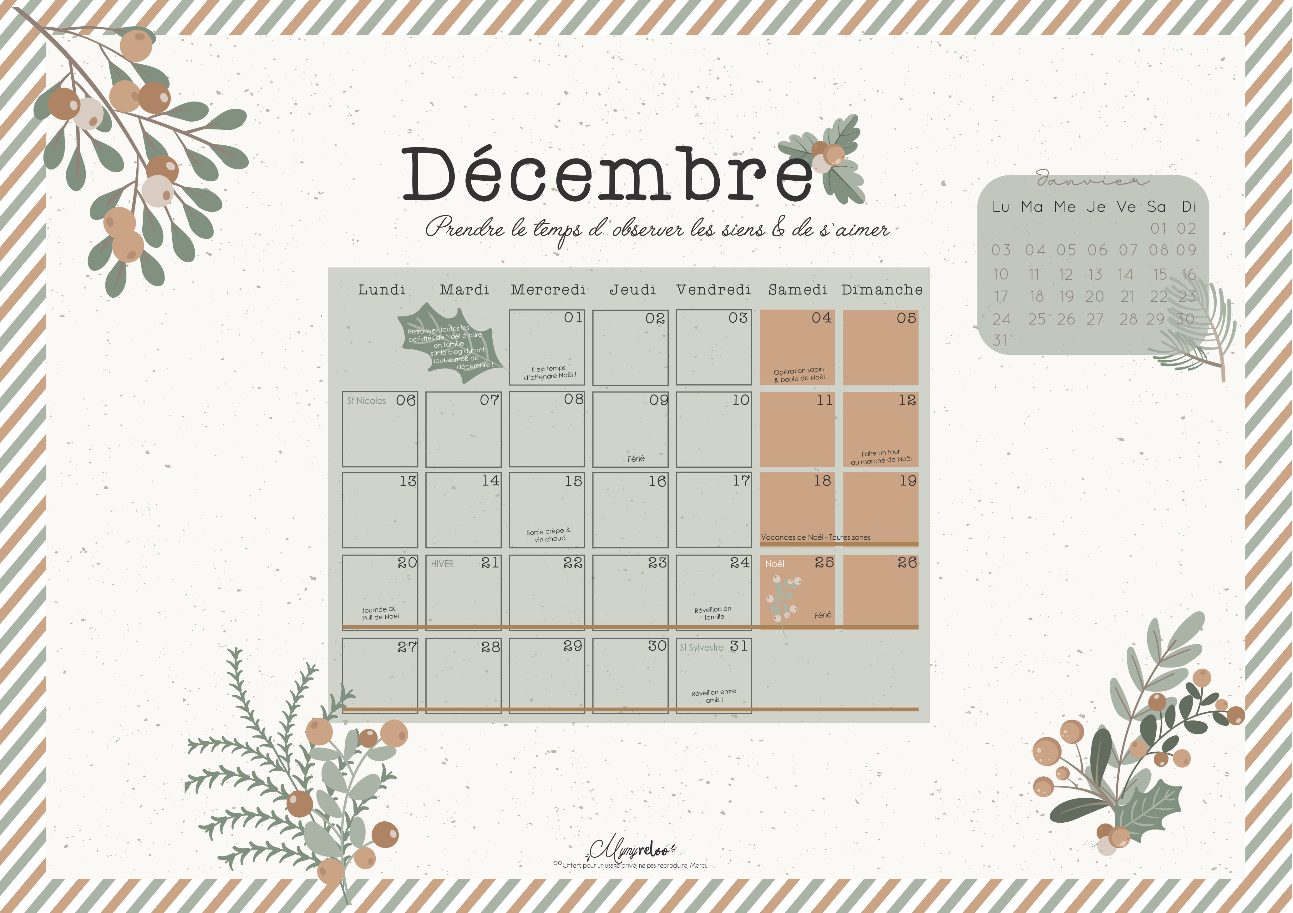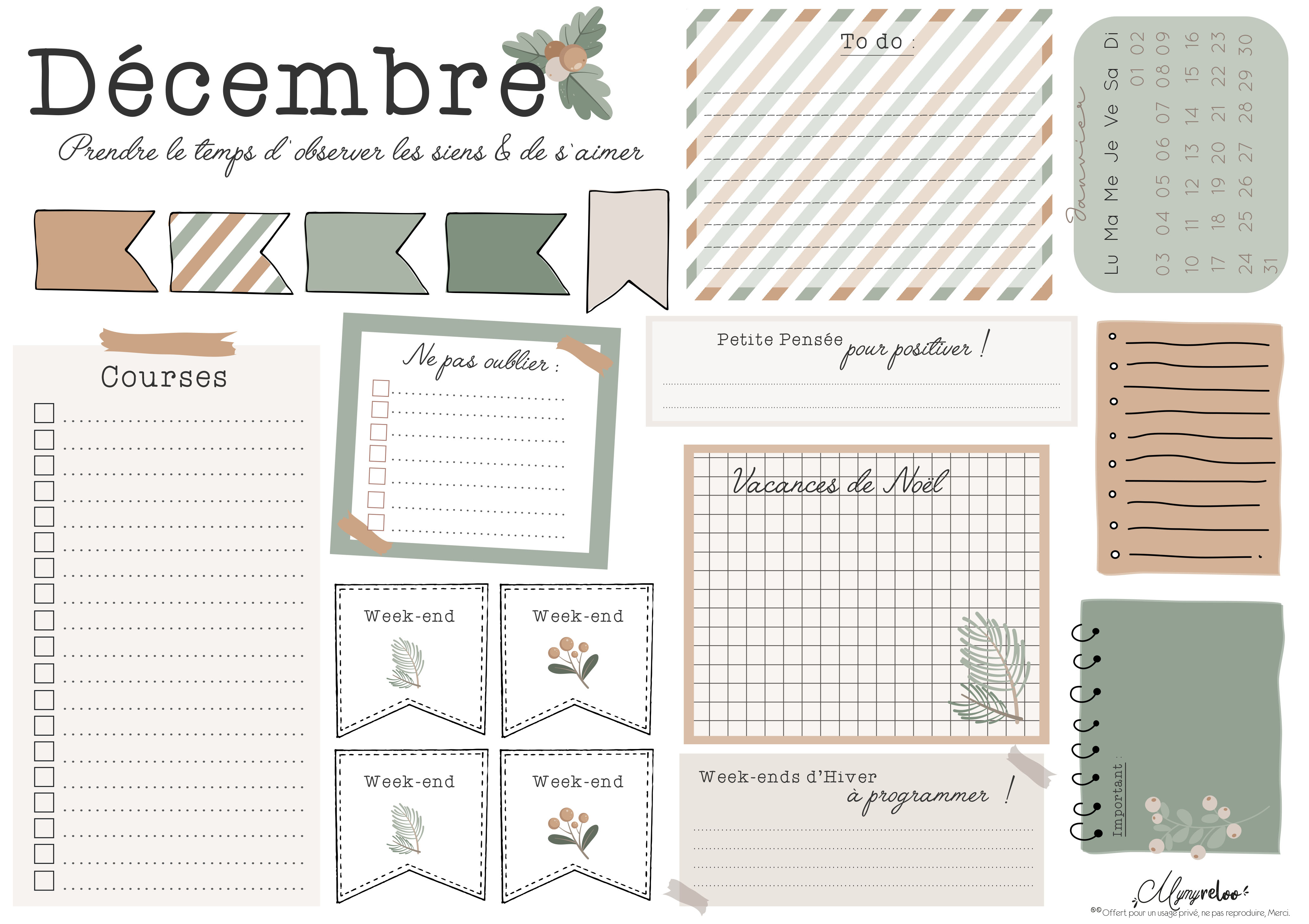 Il est temps d’attendre Noël et de préparer son planning des fêtes. C’est pourquoi cette année, j’ai rajouté quelques petits goodies « spécial fête de fin d’année », j’espère qu’ils vous serviront à être des plus organisés, que ce soit dans la chasse aux cadeaux, pour vos menus de fêtes ou encore dans votre organisation de Noël en famille.