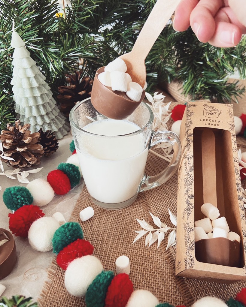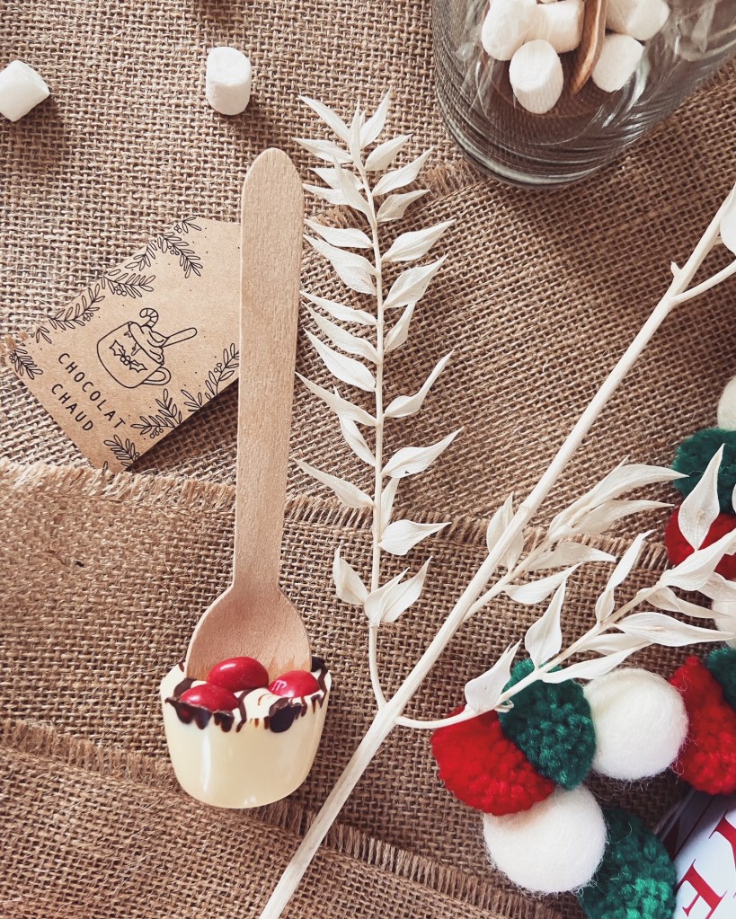 Les enfants sont en vacances, on fait les derniers achats, on prépare les menus, les tenues, on emballe les cadeaux discrètement… Bref, j’aime cette période où on s’active tous pour créer de beaux moments en famille ! Et cette année, j’avais envie de mettre des gourmandises sur ma table de fête ! 😋 C’est pourquoi je vous propose de faire simplement & rapidement quelques cuillères pour chocolat chaud, à emballer dans sa jolie boîte, à offrir aux enfants, à placer sur la table, ou en cadeau de remerciement (collègues, nounou, voisins…)