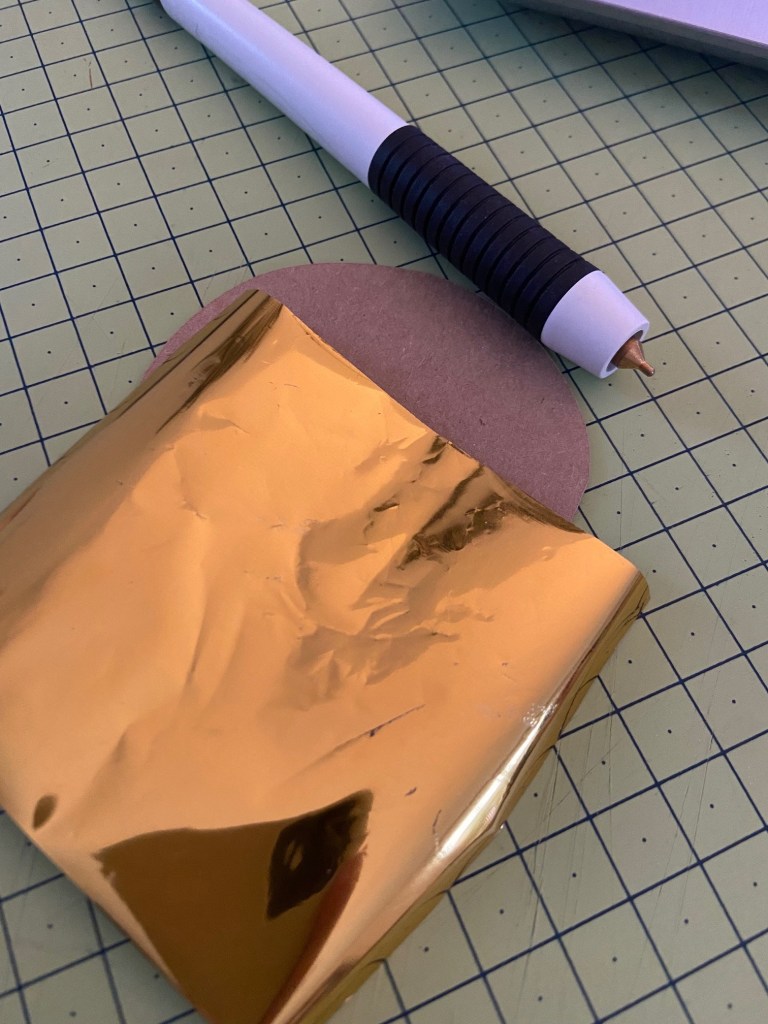 - Un stylet d’embossage et du papier doré OU si vous n’avez pas : un feutre doré fera parfaitement l’affaire (le côté un peu miroir en moins !)