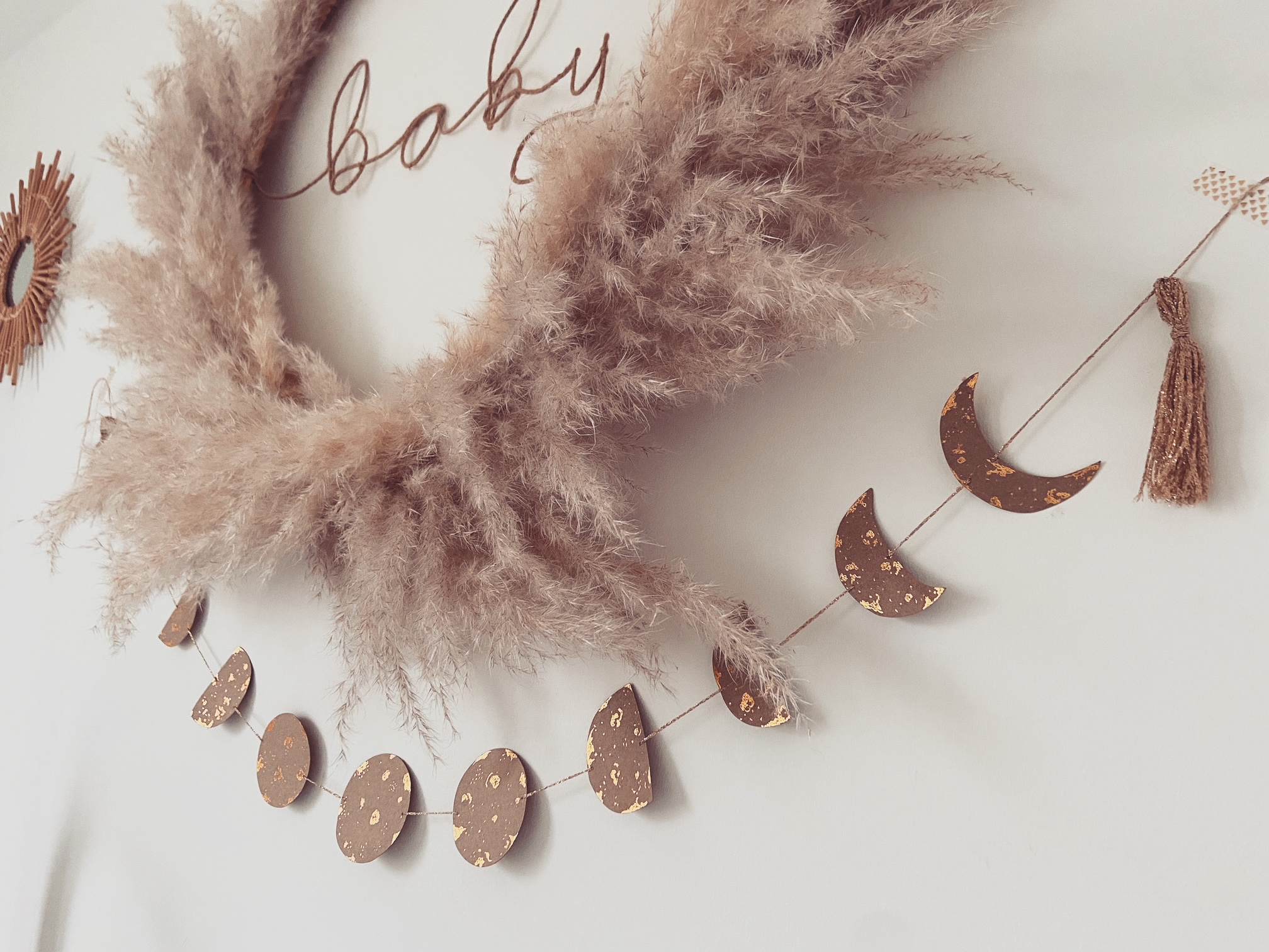 La lune a de nombreux effets sur notre bien-être. Les nuits de pleines & nouvelles lunes sont souvent synonymes d’insomnies, elle peut exciter les enfants, nous redonner de l’énergie aussi… Bref, elle a beaucoup d’influence sur notre corps et notre esprit, c’est pourquoi j’avais envie de créer cette jolie guirlande.