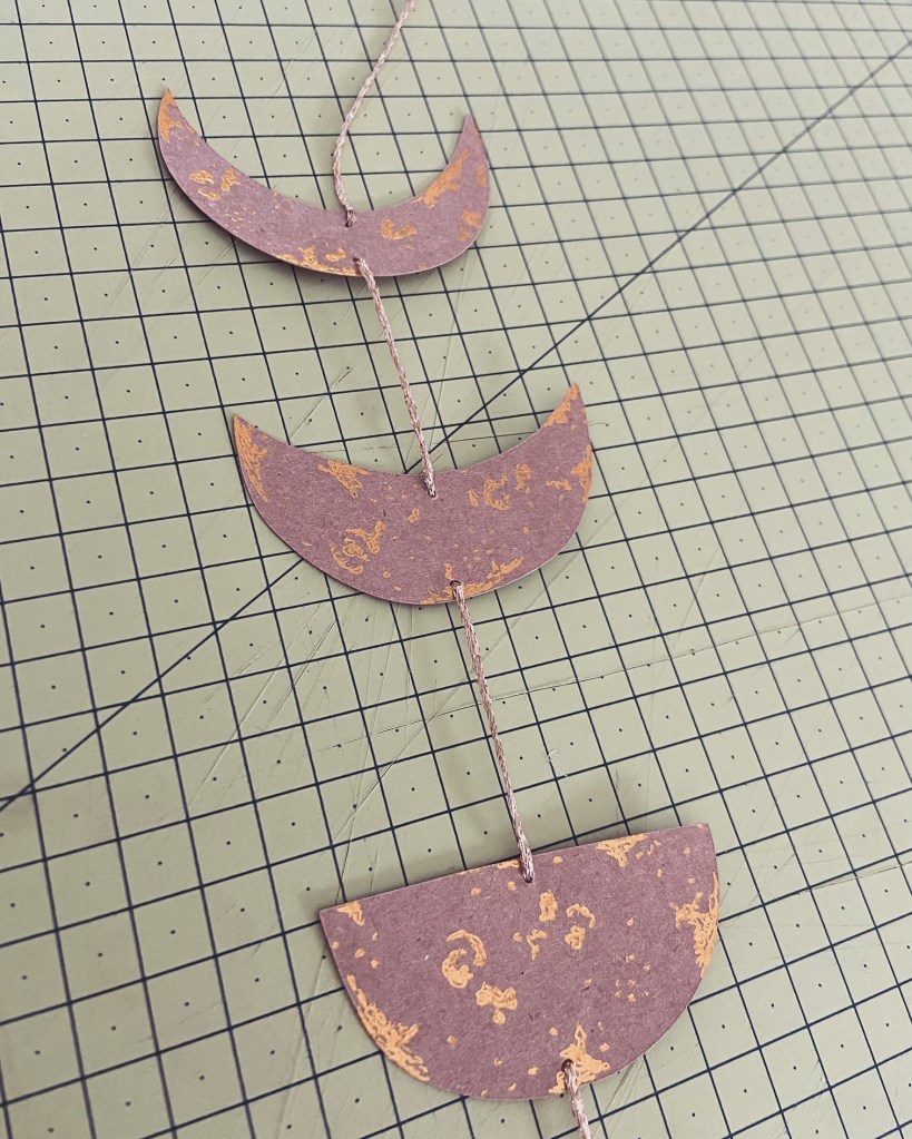 Et oui, aujourd’hui, je vous propose de créer une jolie guirlande en papier kraft & embossage, avec les différentes phases de la Lune.