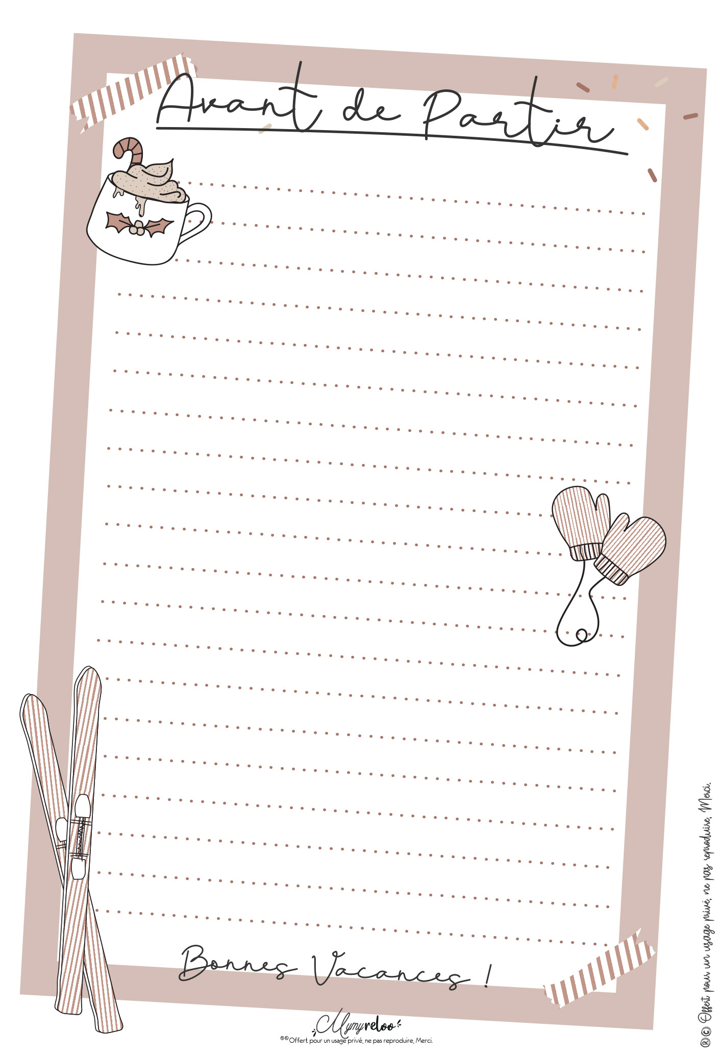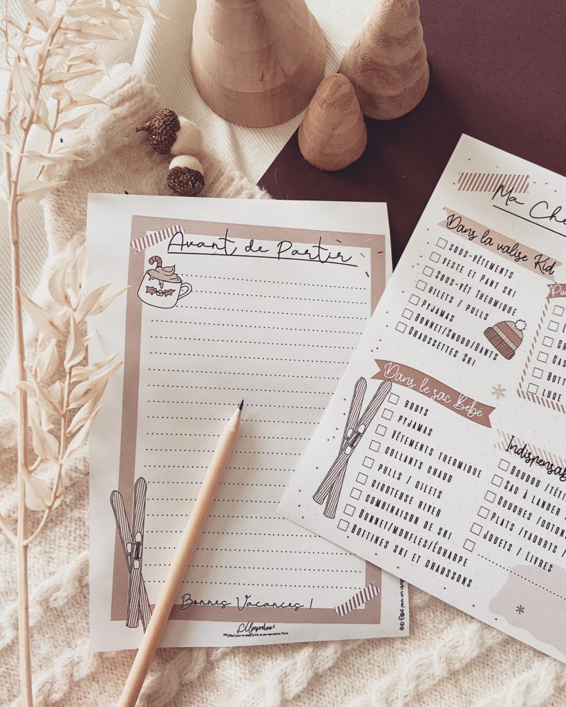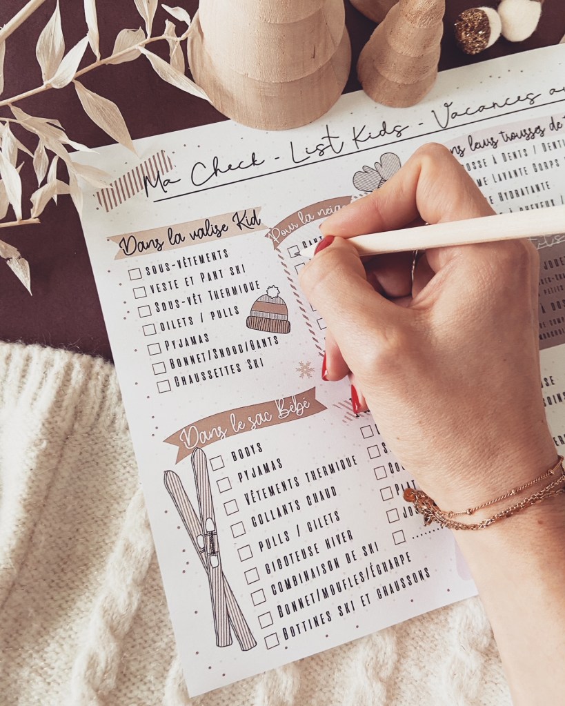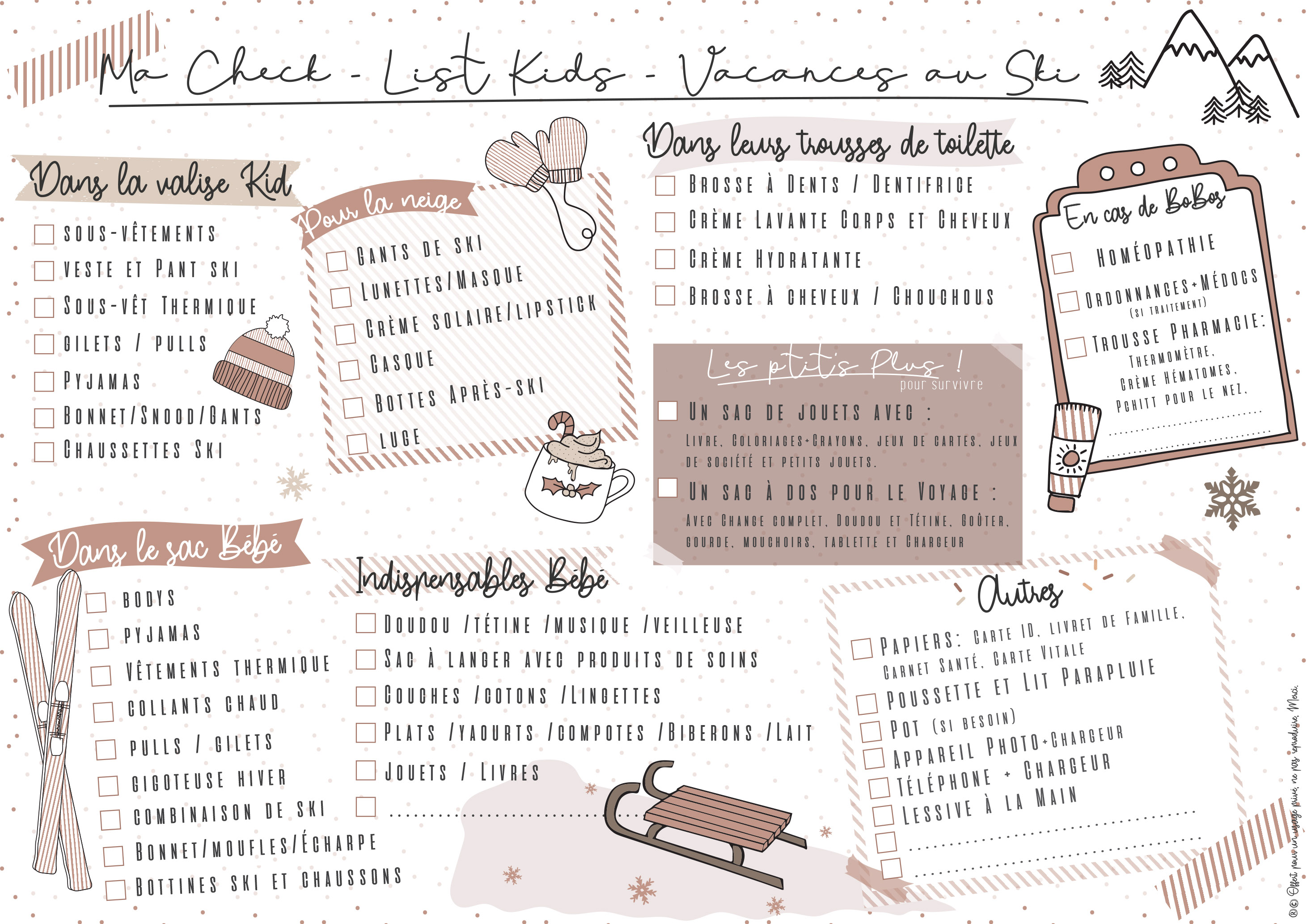 Aujourd’hui, je vous propose un goodies de circonstance : Une check-list pour partir sereinement à la montagne ! Parce que c’est beaucoup d’organisation une semaine au ski, surtout avec des enfants, petits ou grand !