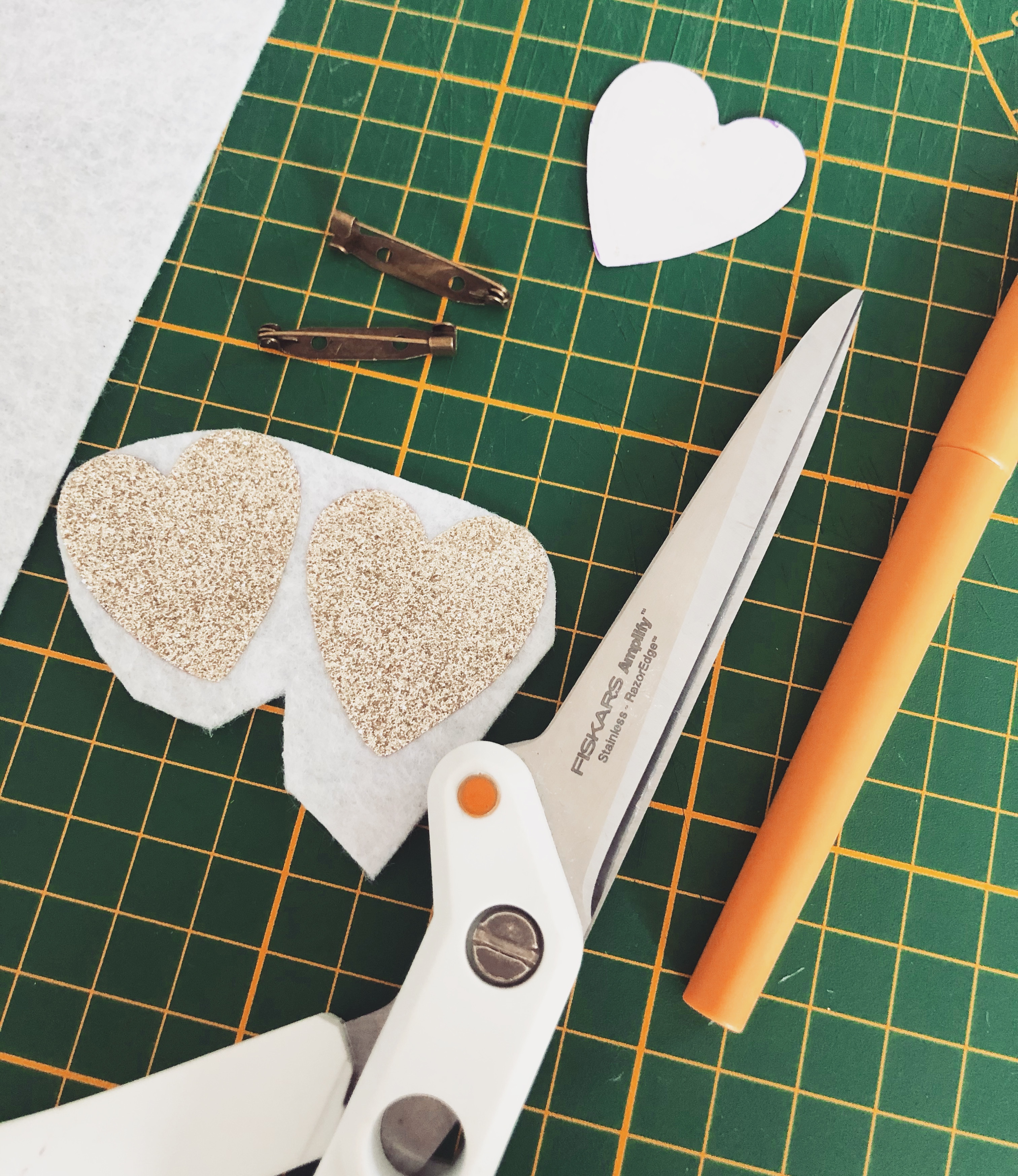 Passons maintenant à la broche : Pour celle-ci, c’est facile : Dessinez la forme que vous souhaitez (ici, un cœur !) découpez-la dans le thermo paillette et reportez-le sur la feutrine avec votre fer à repasser bien chaud. Ensuite, collez votre broche juste derrière.