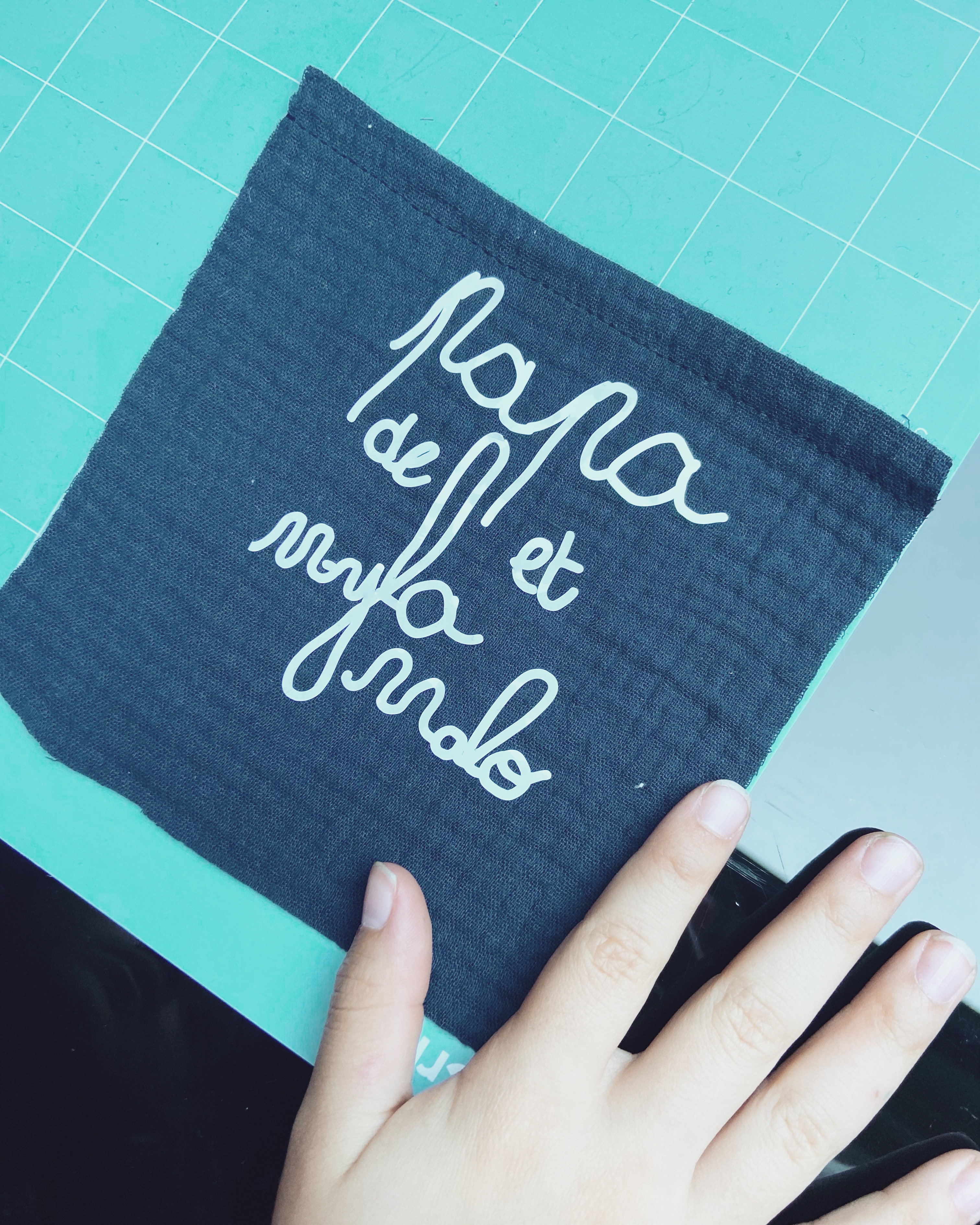 Version avec machine Cricut : Dans un premier temps, faites écrire ou dessiner vos enfants quelque chose de simple. Prenez-le en photo et transférez-le sur le design-space de Cricut, suivez les étapes pour créer le thermocollant du dessin ou de la phrase de vos kids.