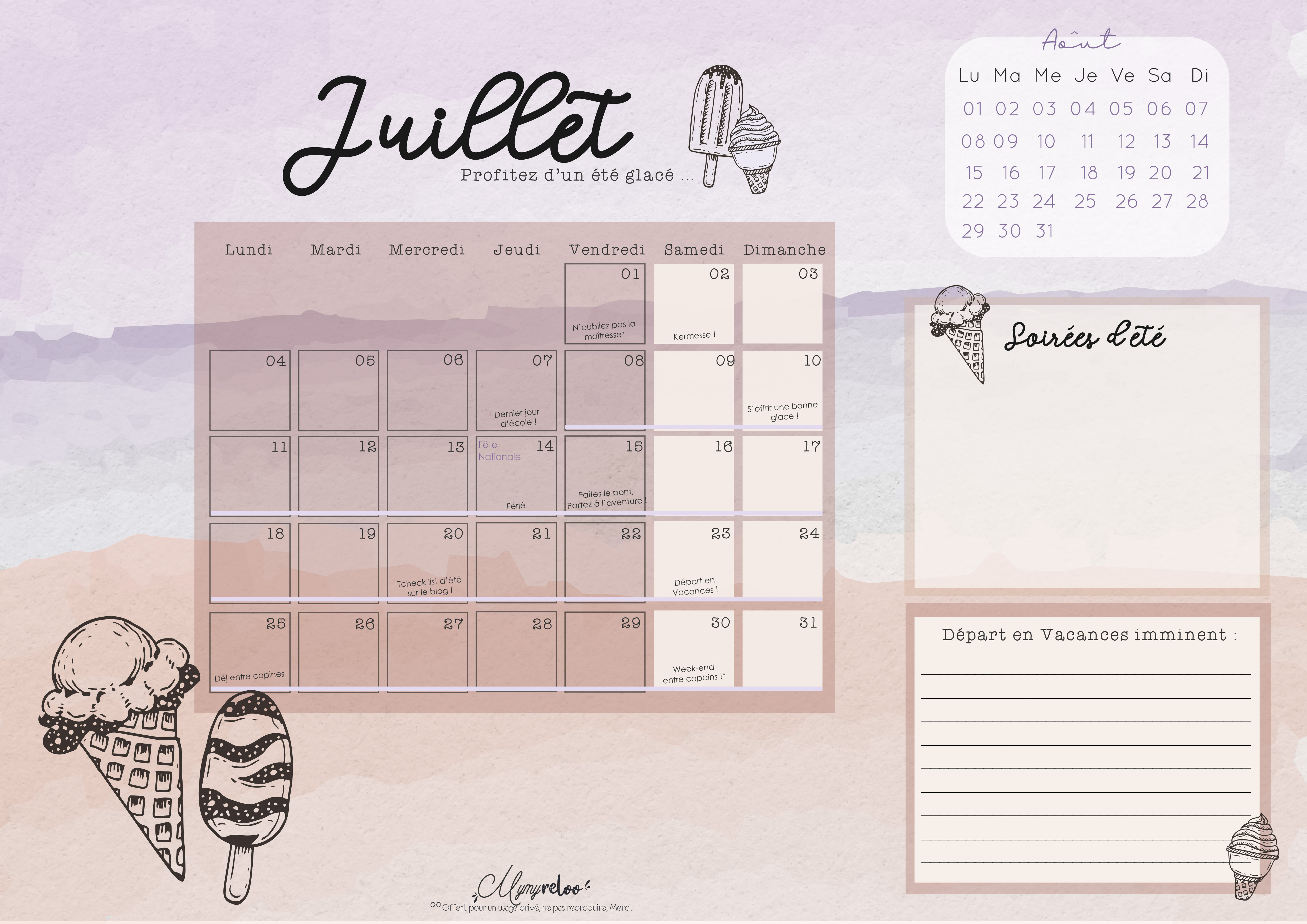 Et toujours 2 templates pour agrémenter vos bujos, cahiers et autres To Do, pour un été organisé et stylé 🙂