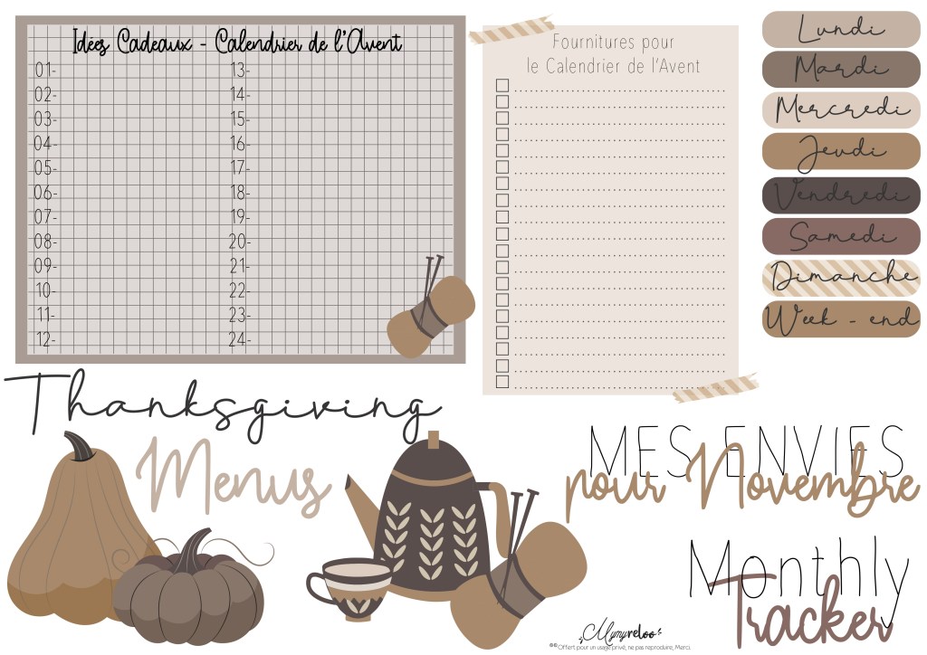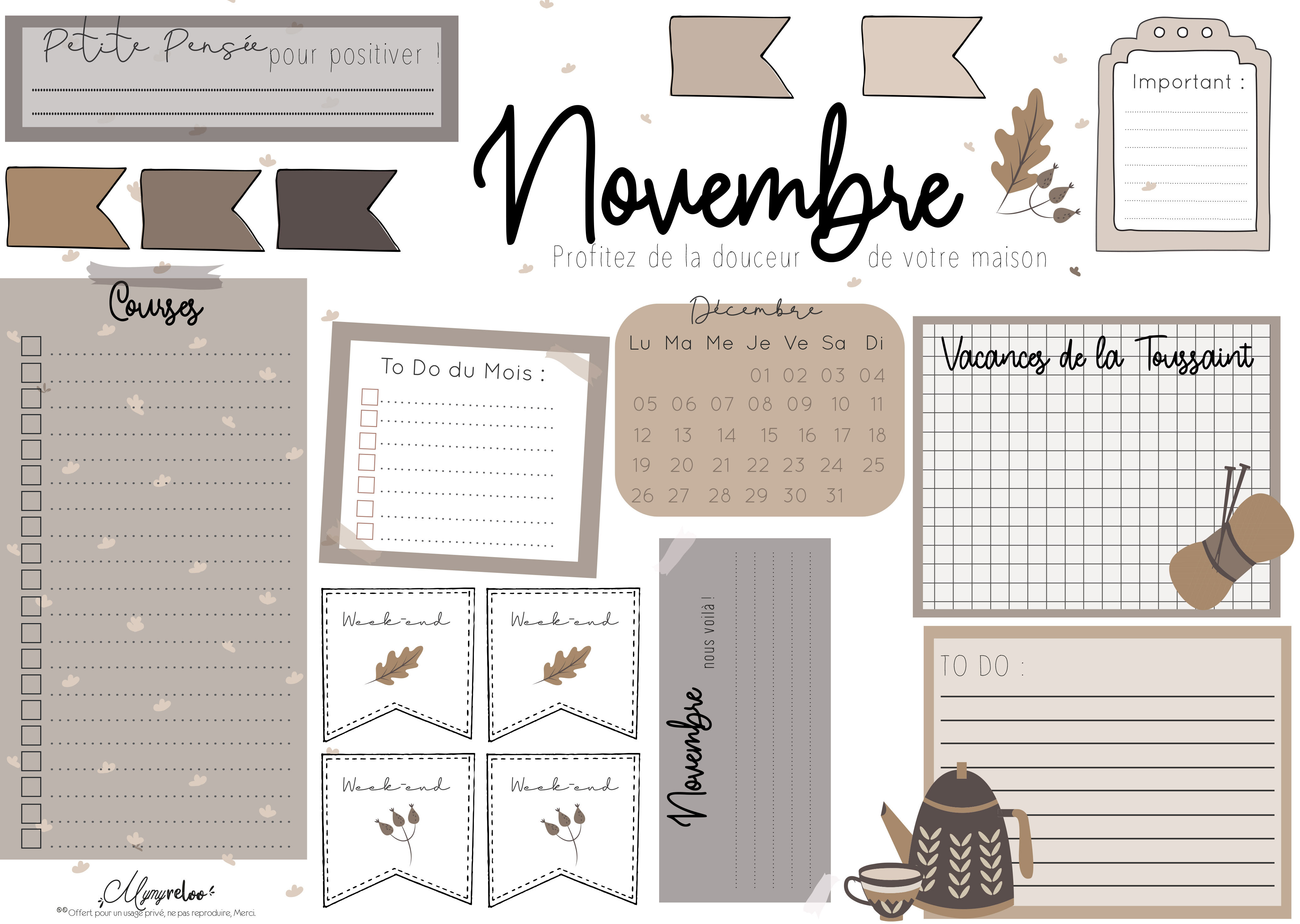 Vous trouverez juste ci-dessous de quoi organiser et décorer votre joli mois de Novembre !