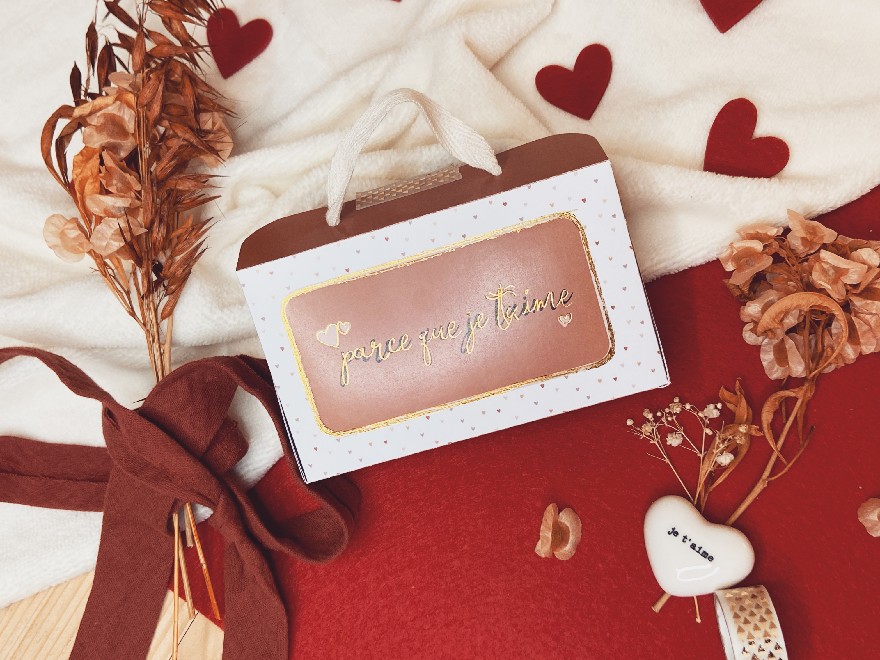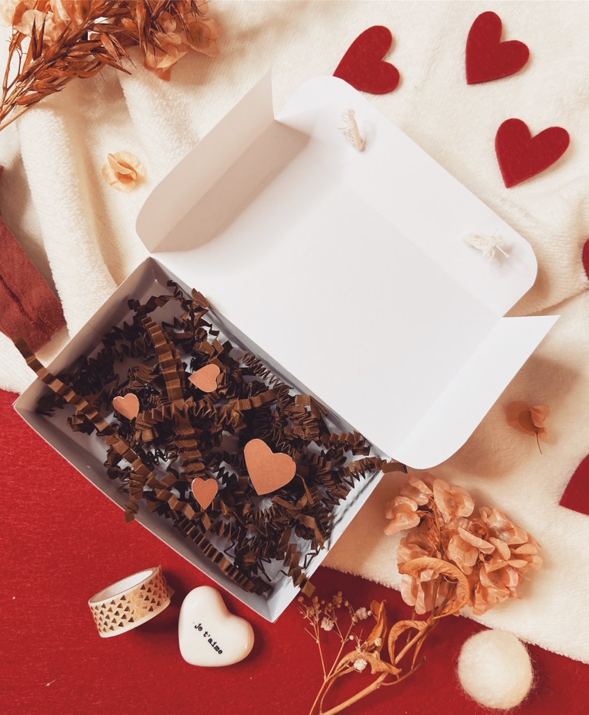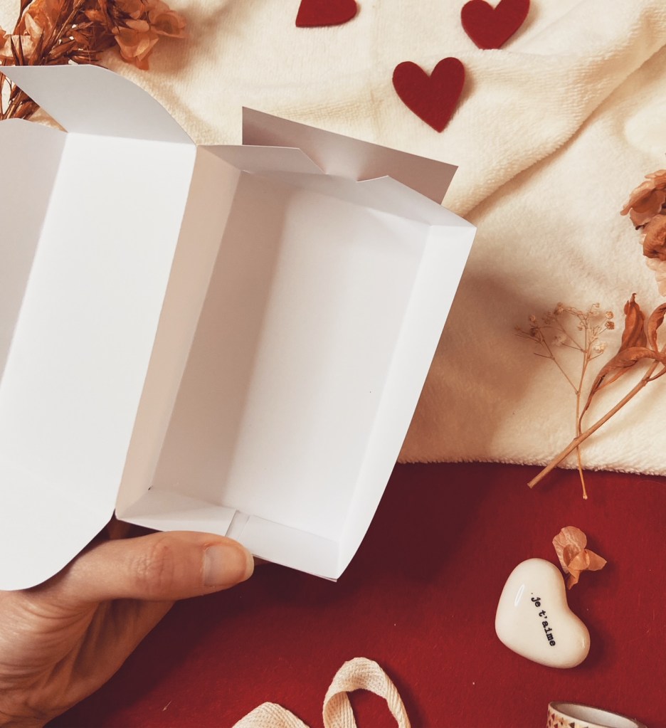 Cette année, je vous propose de créer une petite boîte toute mimi pour la st Valentin ! Une petite boîte où vous pourrez glisser ce que vous voulez dedans ! Bonbons, gâteaux ou autres friandises préférées de votre moitié, mais aussi un petit cadeau ou encore des petits mots d’amour.