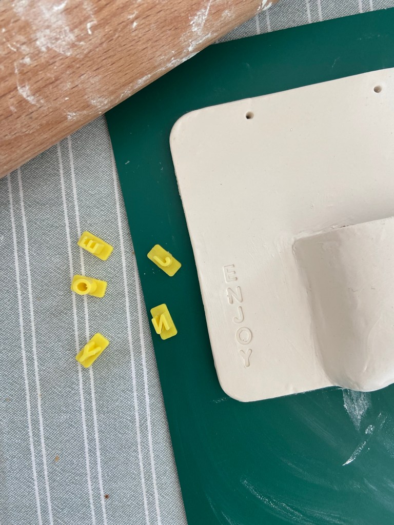 Pour commencer malaxez votre argile pour la rendre plus malléable. Ensuite aplatissez là avec un roulea à pâtisserie. Il faut que la base soit assez épaisse : entre 0,5 & 0,7 mc d’épaisseur.