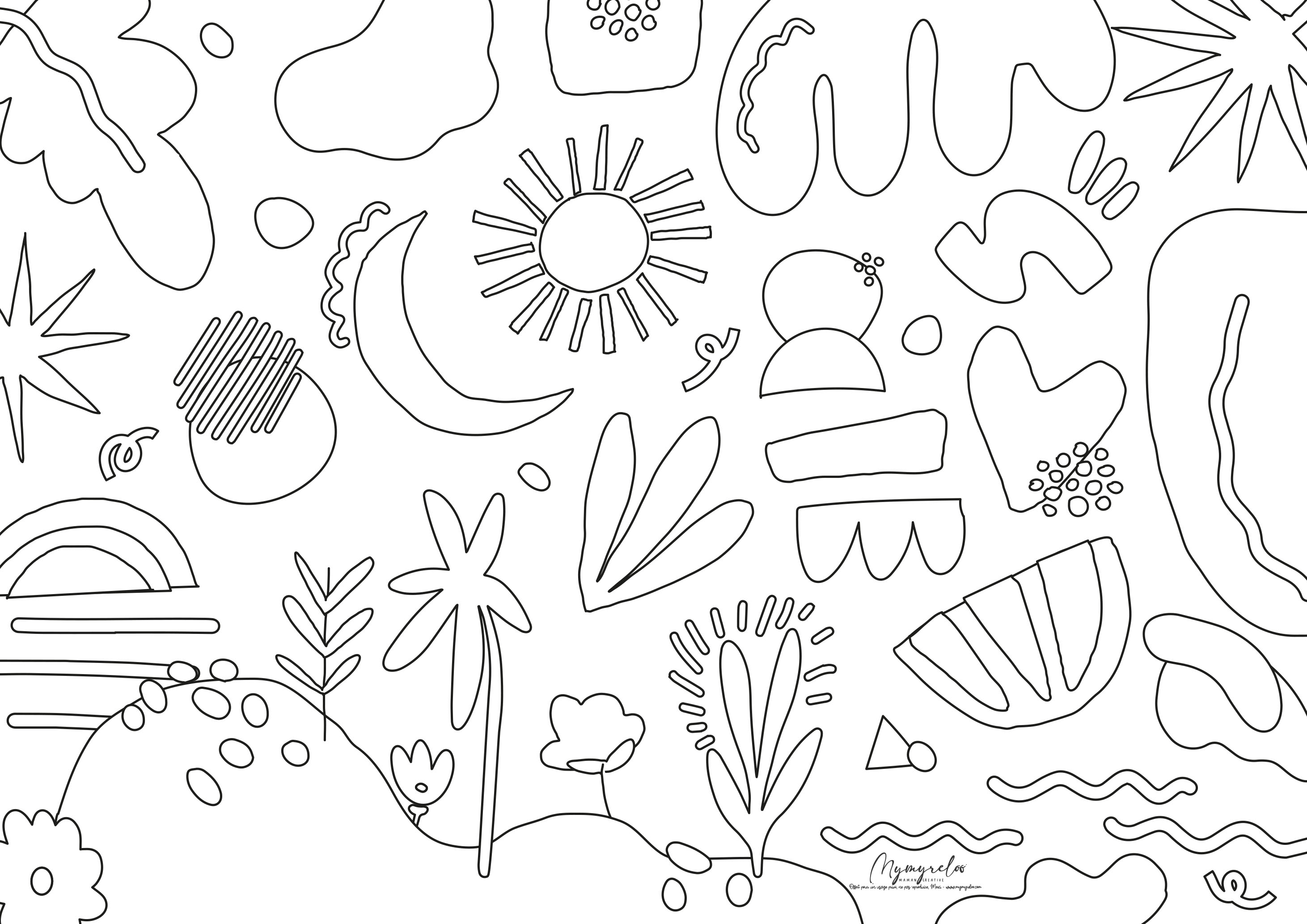 Je vous propose donc de télécharger le coloriage ci-dessous, de l’imprimer et de vous faire plaisir. Vous pouvez le remplir par aplats au feutre, crayon, au stylo aussi ou à la peinture etc.. Vous pouvez aussi prendre le temps de réaliser un décor avec des traits, des points et toutes le formes qui vous plairont.
